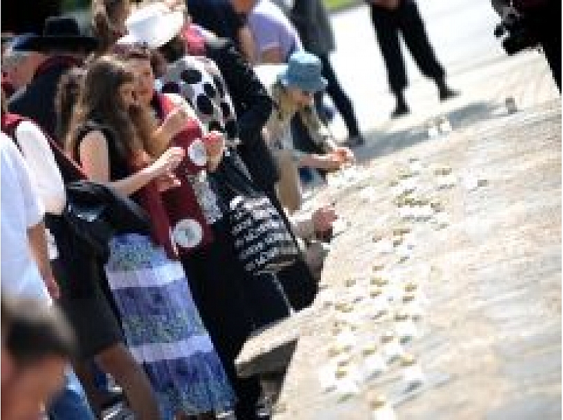 Klātesošie devās piemiņas gājienā pa maršrutu: Vecā Ebreju kapsēta, Līksnas iela, Ludzas iela, Firsa Sadovņikova iela, Gogoļa iela, Lielās Horālās sinagogas memoriāls. Gājiena dalībniekiem tika izdalītas sarkanas šalles ar uzrakstu "70 gadi kopš holokausta", novēroja aģentūra LETA.