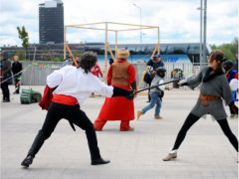 Maija grāfa svētkos drosmīgākie izmēģina roku zobenu cīņās