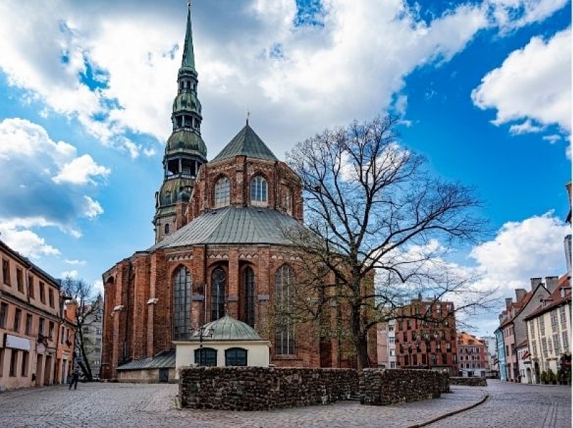 Sv. Pētera baznīca ir viena no vecākajām un vērtīgākajām viduslaiku monumentālās arhitektūras celtnēm Baltijas valstīs. Pirmo reizi ēka dokumentos minēta 1209. gadā, un sākumā tā bijusi neliela halles tipa telpa ar trim vienāda augstuma un platuma jomiem, iespējams, ar savrupstāvošu zvanu torni.