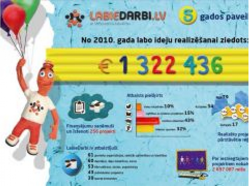 Kā pilsētas informācijas portālam Riga24.lv norāda "LabieDarbi.lv" projektu vadītāja Jeļena Šļihta, "lepojamies, ka piecu gadu laikā esam atbalstījuši 61 organizācijas un biedrības, 60 deju un koru kolektīvus, 53 bērnudārzus, 43 individuālos projektus un 39 sporta komandas, piešķirot vairāk nekā 1 322 000 eiro lielu finansiālu atbalstu. Tas viss ir veicinājis ne tikai mūsu valsts izaugsmi, bet arī arvien lielāku sabiedrības pārliecību, ka finansējums ne vienmēr ir šķērslis ceļā uz savu ideju realizēšanu".