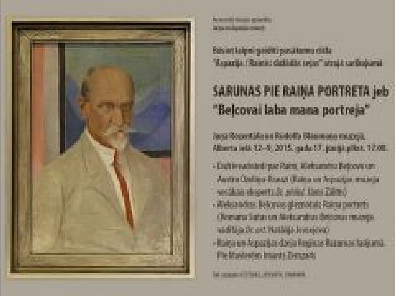* Aleksandras Beļcovas gleznotais Raiņa portrets (Romana Sutas un Aleksandras Beļcovas muzeja vadītāja Dr. art. Natālija Jevsejeva);